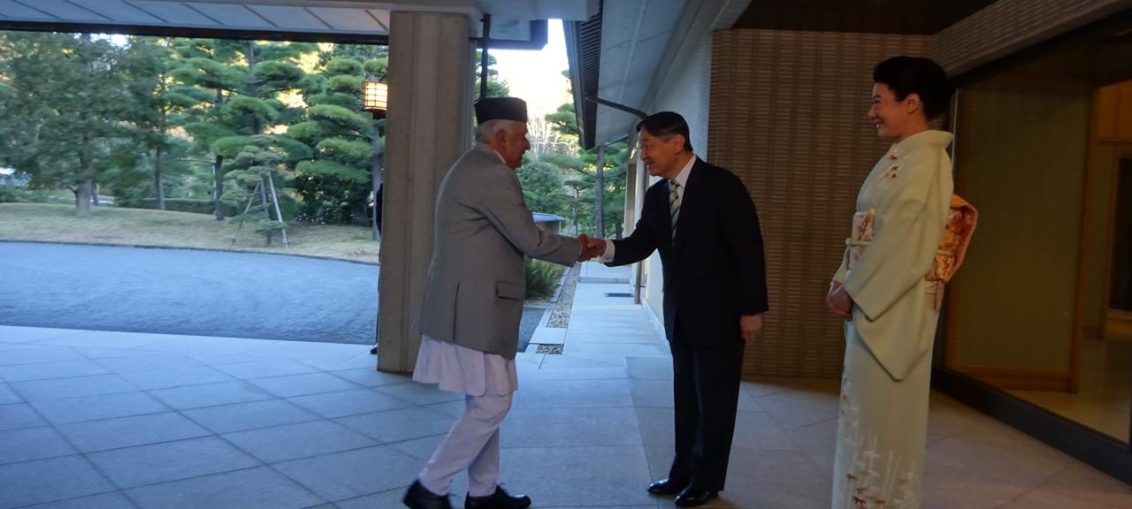 राष्ट्रपति पौडेल र जापानका सम्राटबीच इम्पेरियल प्यालेसमा शीष्टाचार भेट प्रवास समाचार February 3, 2026February 3, 2026 -पुरुषोत्तम लामिछाने, ओसाका जापान ( टोकियो ) । राष्ट्रपति रामचन्द्र पौडेल र जापानका सम्राट नारुहितो बीच आज यहाँ शीष्टाचार भेटघाट भएको छ । जापानको चारदिने भ्रमणमा रहनुभएका राष्ट्रपति पौडेल र जापानका सम्राट नारुहितो बीच इम्पेरियल प्यालेस टोकियोमा शीष्टाचार भेटवार्ता भएको हो । जापान सरकारको निमन्त्रणामा राष्ट्रपति पौडेल प्रथम महिला सबिता पौडेलसहित नेपाली